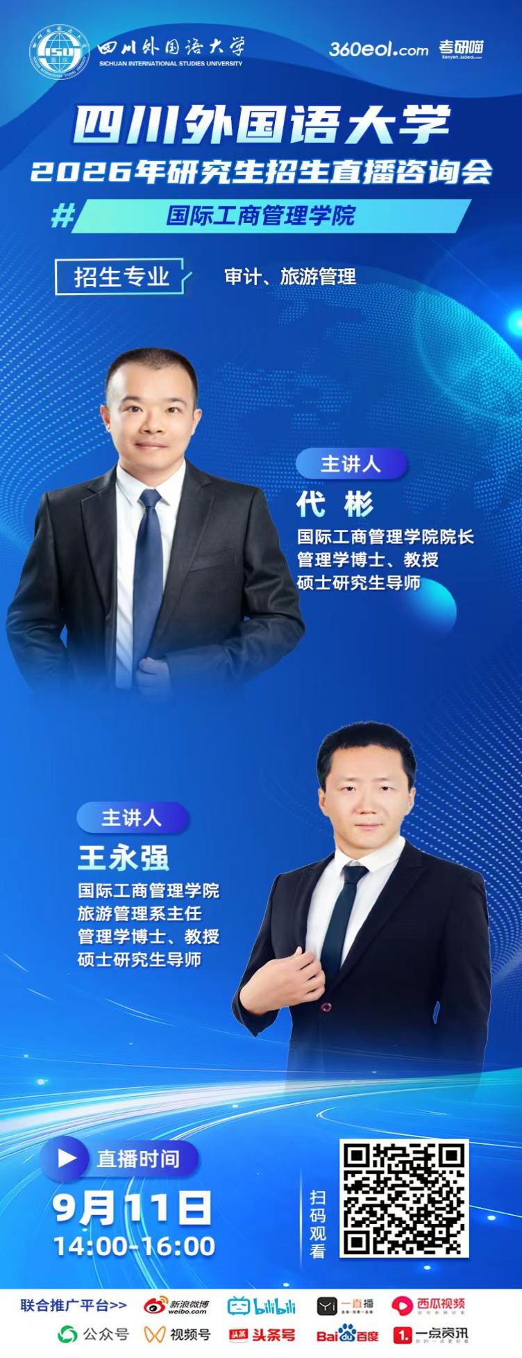 招生预告 | 四川外国语大学2026年审计硕士和旅游管理硕士招生直播咨询会