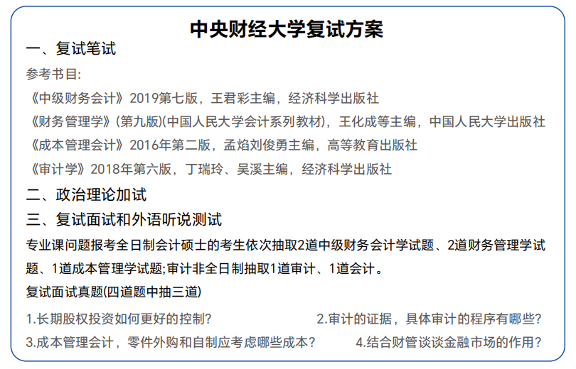 中央财经大学MPAcc复试形式与真题