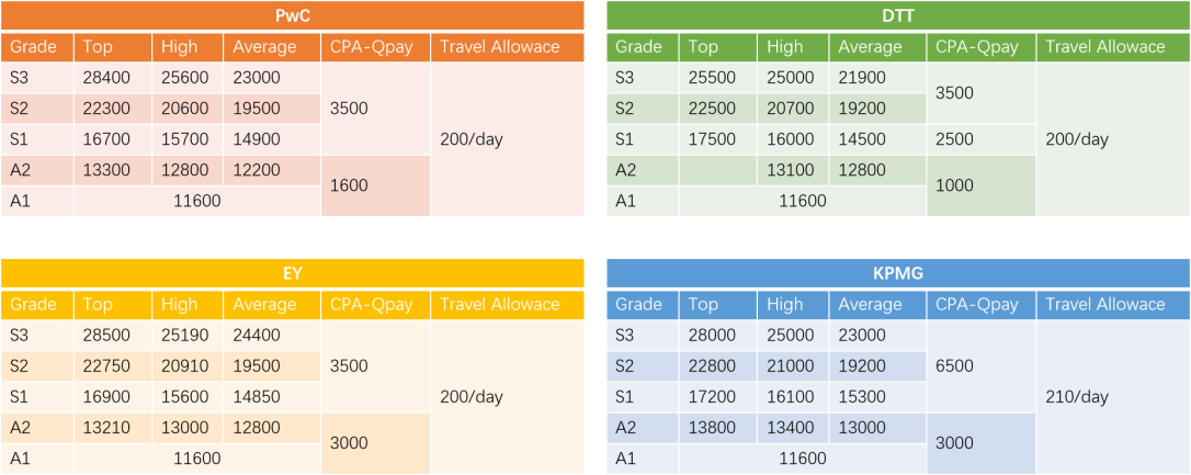 四大会计师事务所薪资体系与CPA证书补贴