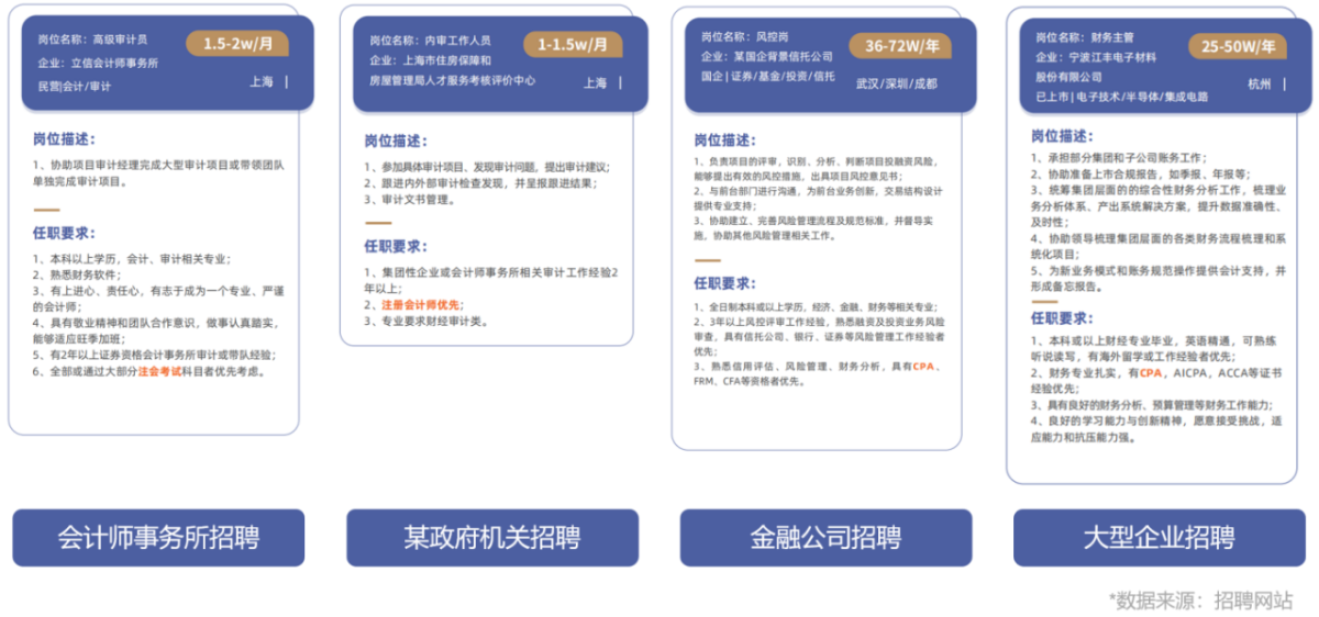 不同行业的诸多岗位都明确表示,优先录取CPA持证人