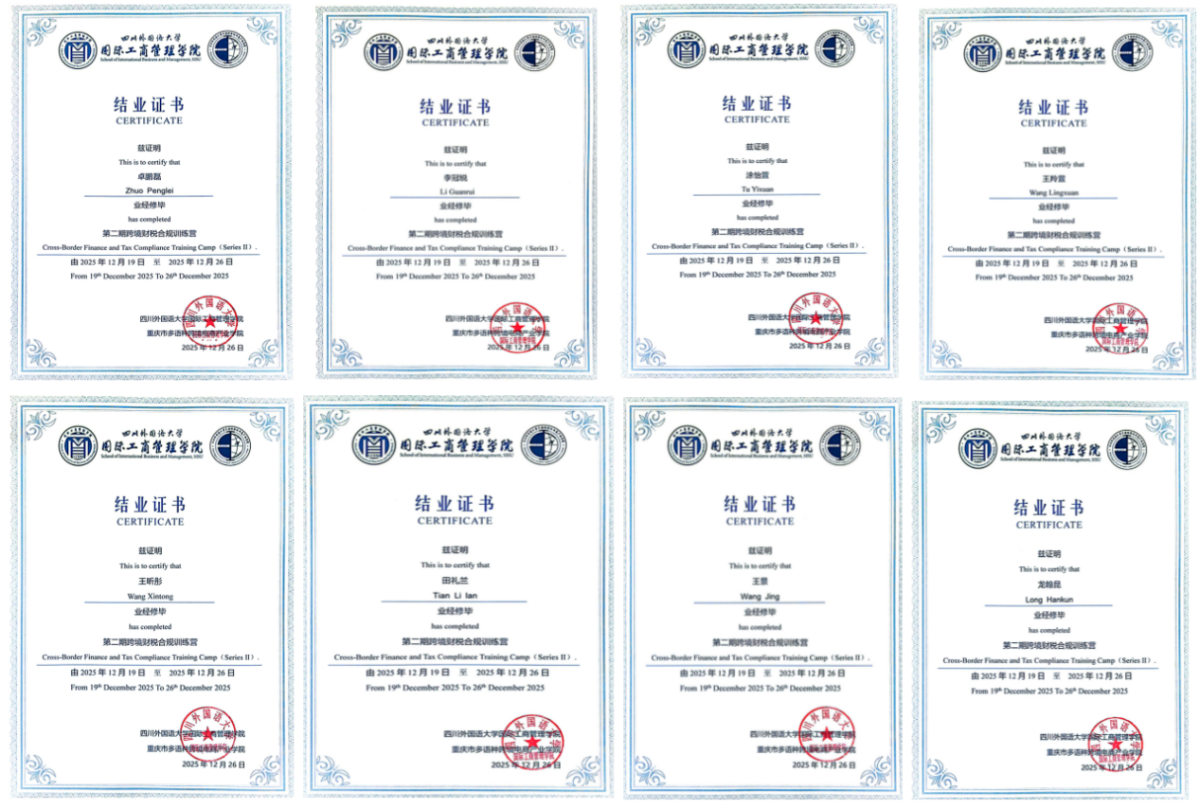 图2 第二期跨境财税合规训练营结业证书(部分)