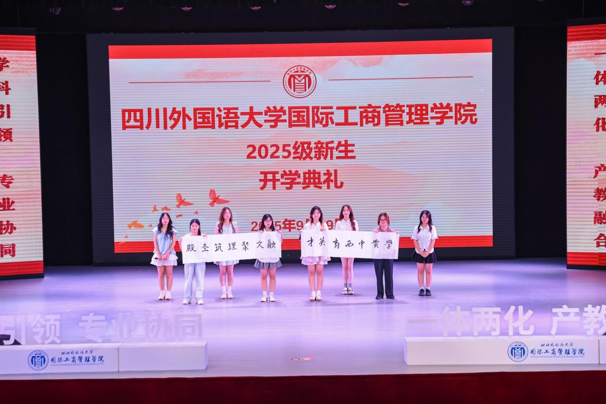 之后,2024级航空服务与艺术管理专业的学生们带来的走秀表演《工管蓝天秀 筑梦新征程》、2025级电子商务专业新生代表朱思聪同学的发言、学院留学生和本科新生代表共同演唱的歌曲《爱你》以及学生代表现场即兴表演的书法,既生动展现了中外学子对话共生的良好氛围,也充分展示了学院学子昂扬的精神风貌和不断进取的求知精神,自信从容、逐梦而行!