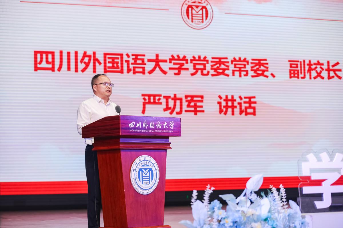 严功军副校长总结讲话,他首先充分肯定了国际工商管理学院近年来在人才培养、学科建设上取得了卓越的成绩,结合学校和学院优势搭建多个育人平台,为同学们的发展提供了无限可能;随后,严校长将“四个要”的努力方向送给同学们,鼓励大家用好川外的外语优势,充分挖掘自身潜力,在实习实践的过程中,找到自身的竞争优势,找到适合自己的人生赛道。