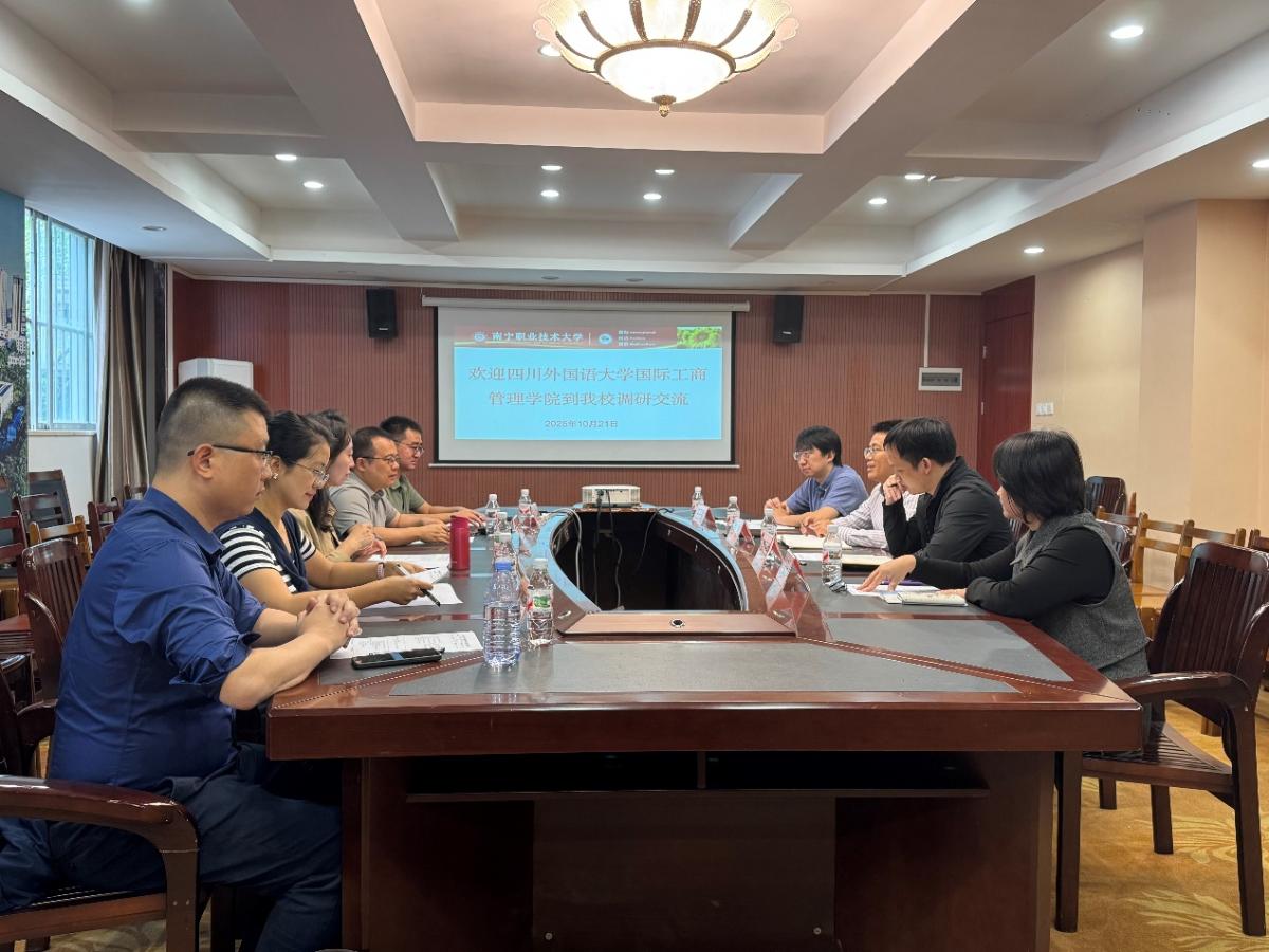 10月21日上午,调研组一行赴广西RCEP跨境电商产业学院调研。产业学院彭敏书记、李正海副院长(主持工作)等领导陪同参观了教学与实训基地,并详细介绍了产业学院在政校企协同育人、课程体系建设及人才培养模式创新等方面的探索实践。广西RCEP跨境电商产业学院在资源整合、平台搭建及服务区域经济发展方面积累的宝贵经验,为我院高质量建设“多语种跨境电商产业学院”提供了有益启示与重要参考。