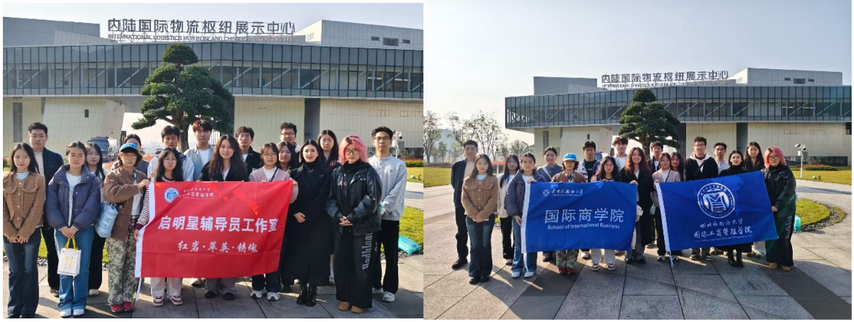 11月27日下午,我院团总支及“启明星”辅导员工作室,组织师生代表与天津外国语大学国际商学院交换生一行,赴重庆内陆国际物流枢纽展示中心开展访企实践活动。