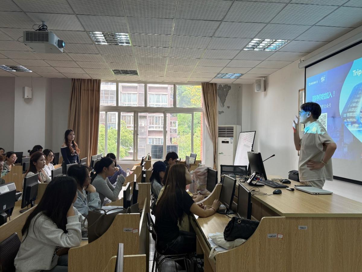 4月16日上午,开营仪式在学校宏文楼智慧文旅实验室拉开帷幕。携程青训营项目经理吴奕辰系统介绍了青训营项目发展历程,解读了本期青训营的“主播能力塑造”与“运营全程管控”两大核心模块设计,并通过互动问答环节,引导学员思考自身职业定位与行业需求的契合点。现场气氛热烈,学员们纷纷表示对青训营项目充满期待。