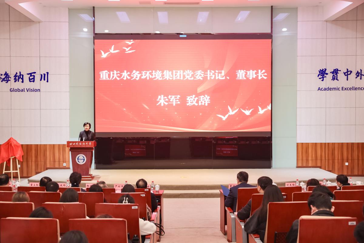 朱军董事长在致辞中表示,重庆水务环境集团作为市属重点国有企业,总资产逾1800亿元,年营收近200亿元,员工总数1.8万人,控股两家A股上市公司,相关业务发展至美国、印度、泰国、越南等12个国家和地区,正积极出海拓展合作“朋友圈”。未来,集团将与川外一道搭建跨国实习实践平台,推动形成产教融合共同体,为培养更多胸怀家国、通晓国际、专业过硬、语言娴熟的“丝路筑梦者”贡献力量。朱军董事长期待和欢迎我校学子加入重庆水务环境集团,共建从课堂到职场、从校园到世界的直通桥梁。