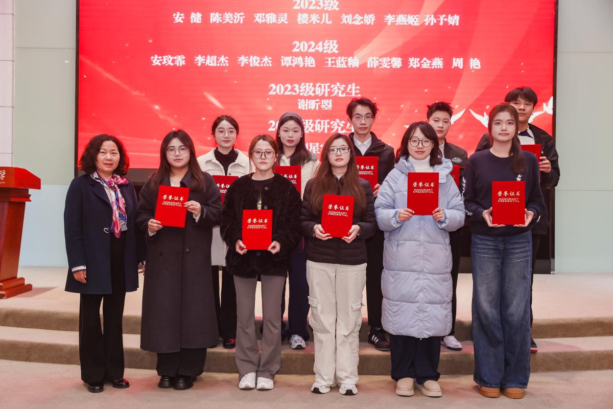 接下来,在国际工商管理学院实习实践优秀师生颁奖环节,鞠洪芬会长、刘玉梅处长、张雪松副处长共同为实习实践中表现优异的获奖师生颁发荣誉证书。