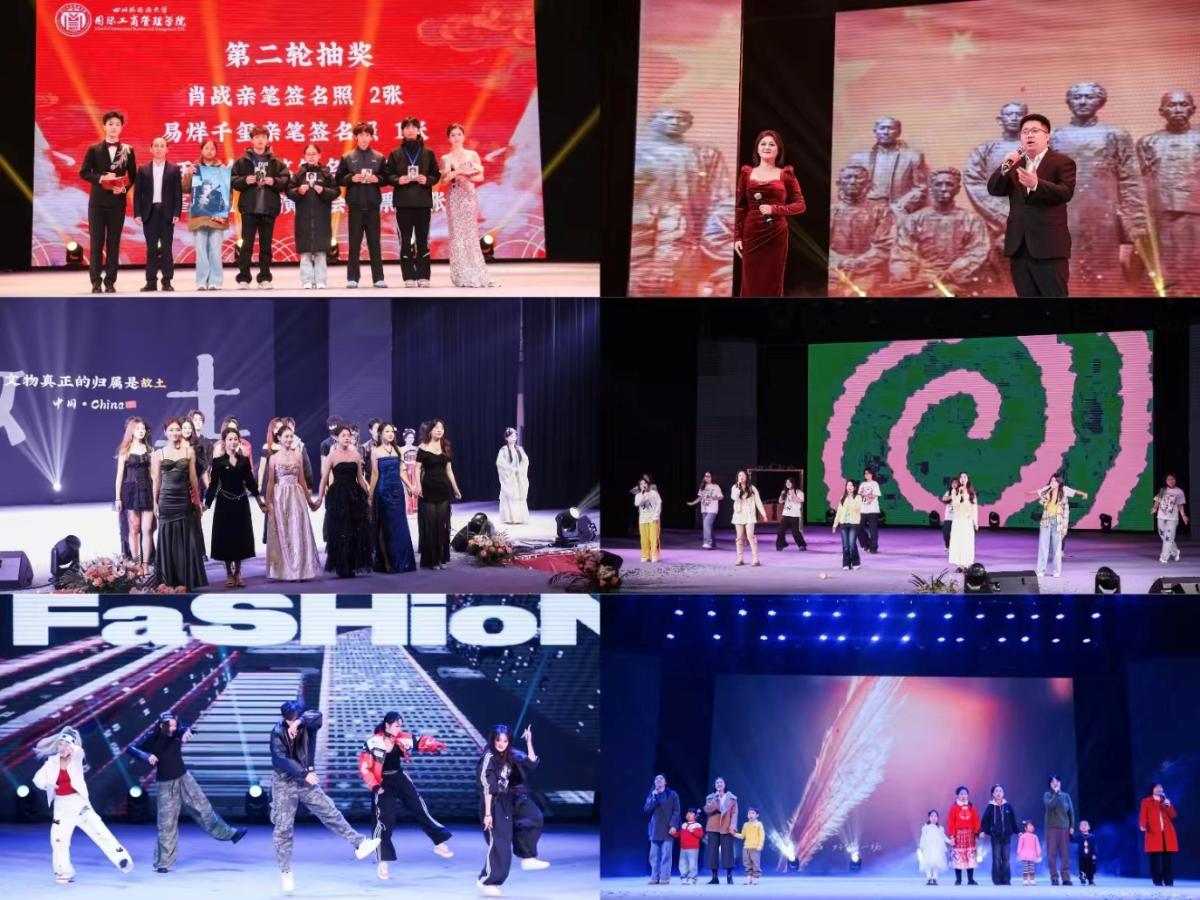 灵蛇渐隐,骏马踏风而来。学院合作企业谦友投资有限公司签约歌手何宽为现场带来歌曲串烧《赤子谣·花满途》,唱出了青春的炽热与盛放的绚烂;古典舞《上铃鼓》,用翩跹舞姿勾勒出东方古典的雅致韵味,让观众在一招一式里,触摸到中华优秀传统文化跨越千年的灵动与厚重;我院学子的原创话剧小品《川江船魂》,再现了宜昌大撤退的壮阔史诗,重温了爱国商人卢作孚实业救国的赤子担当;歌曲《You Belong With Me》为我们描摹青春里那份惺惺相惜的陪伴,那份无需言说的默契;舞蹈《为了母亲》,以躯体为笔、舞台为卷,重绘抗日救亡的峥嵘岁月。